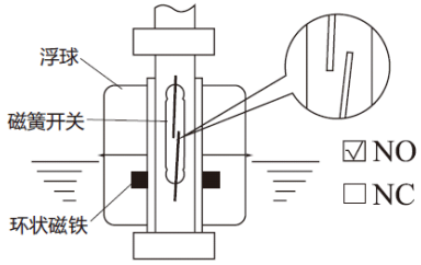 常開(N.O.),當液位上升時磁簧開關接通