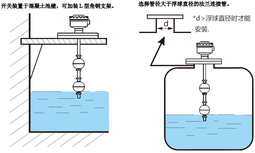 在訂購時須注意,兩個浮球間最小間距及最底點的最小距 離,如果間距不夠將無法依規格生產制作。